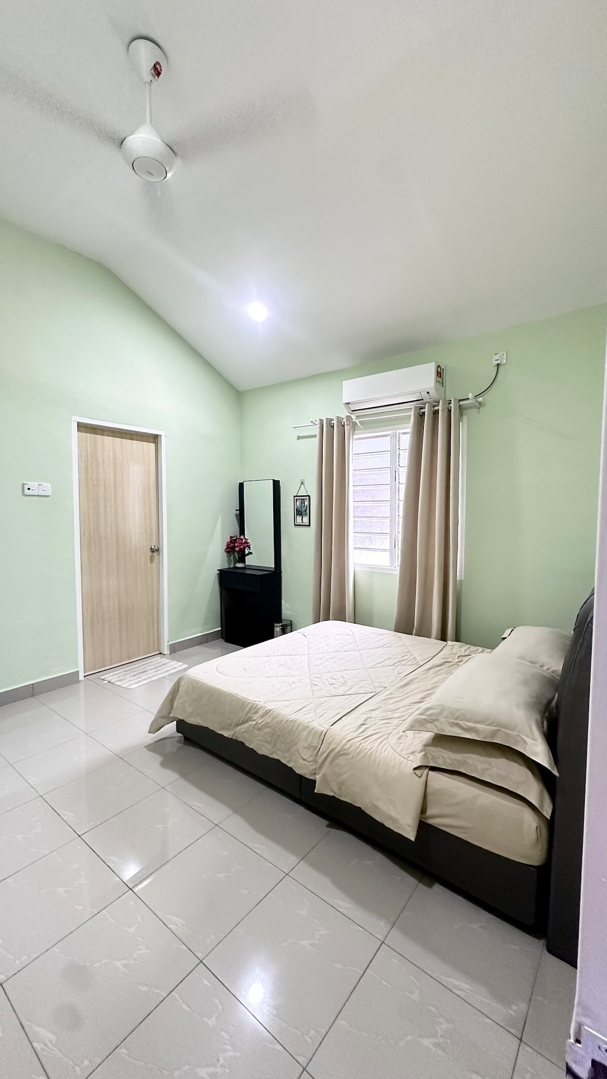 家私全新,舒服及宽敞,能容纳16人,附近有7-11,用品毛巾肥皂🧼齐全,全房有冷气枕头,无线上网超强😊 🌸注意事项⚠️(入住前需付款抵押金RM300,退房检查后没问题将会退回抵押金) 🌸126 HOMESTAY (16person) We will collect a deposit of R M 300. It will be refunded after check out within 24hours. You may pay by instant transfer to PUBLIC BANK ENTERPRISE Kindly snap and send me the bank slip. Thanks.