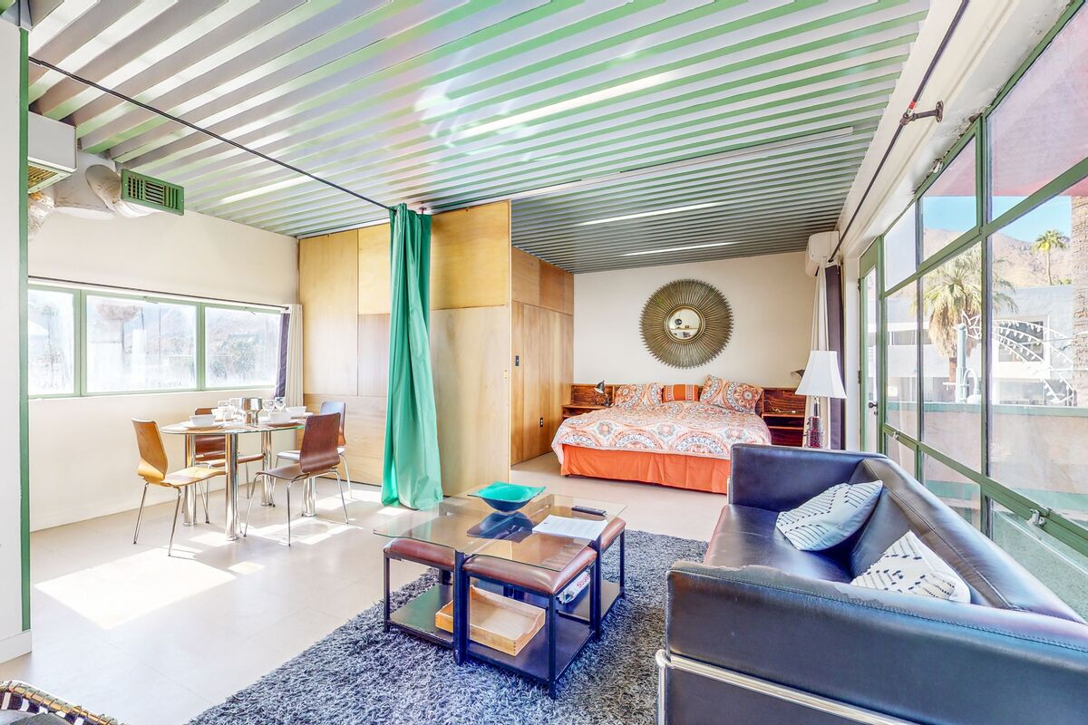 Con licencia del condado de Riverside #000878 Ubicado en un complejo cerrado fuera de lo común. Disfrutá de la quietud de las noches del desierto y el brillo de sus amaneceres. Departamento de un dormitorio, un baño con cocina totalmente equipada. Esta unidad es parte de un complejo de tres unidades. Nuestros departamentos de un dormitorio tienen capacidad para 2 personas cómodamente, pero debido a la alta demanda en los fines de semana de festivales, permitimos hasta 4 huéspedes registrados con una tarifa adicional. Te recomendamos que traigas un colchón inflable y mantas y almohadas adicionales.