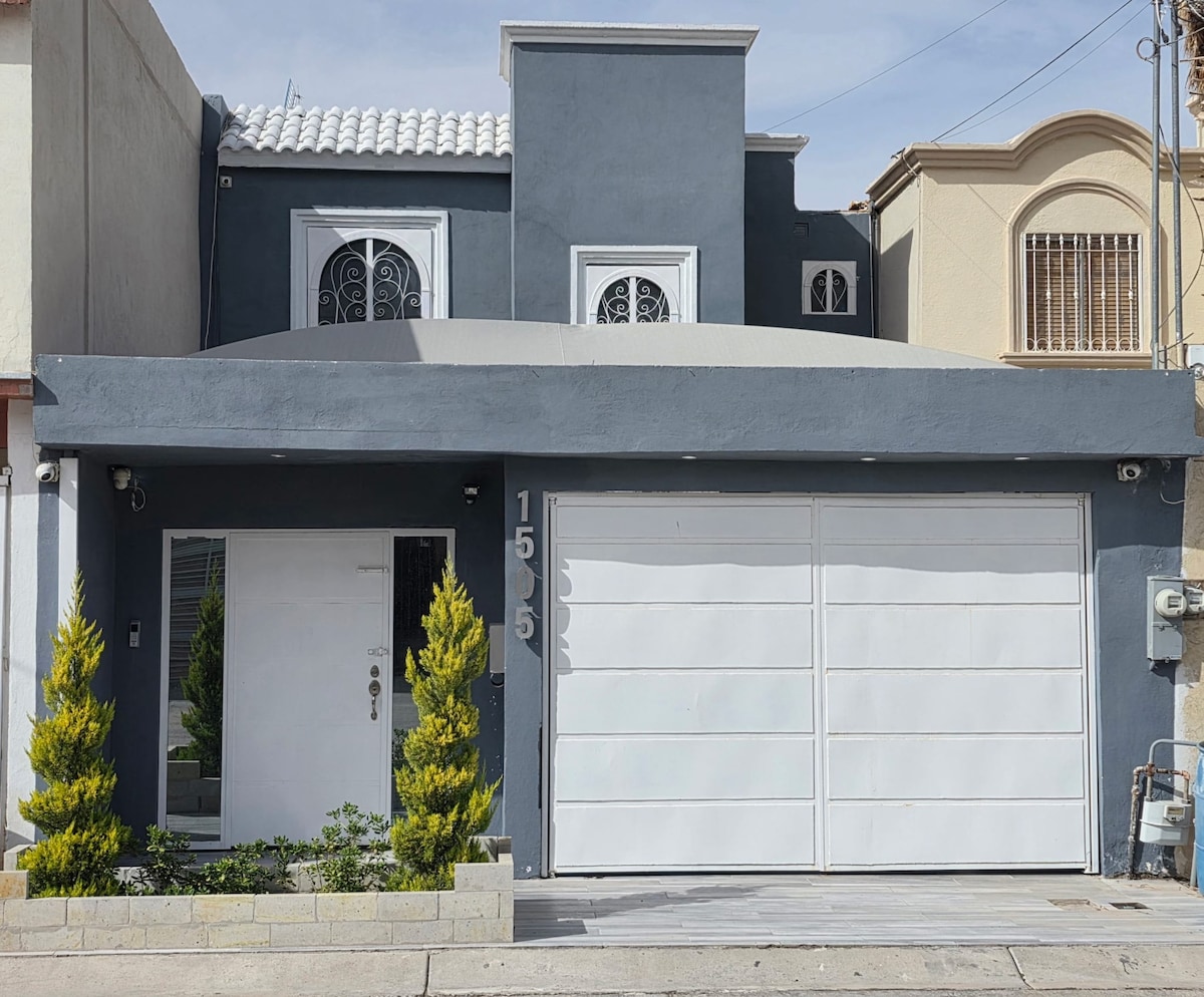 El Consulado Americano esta a 12 minutos en auto por vía rápida, el puente internacional Zaragoza (México/USA) esta a 5 minutos; Casa en fraccionamiento privado de dos pisos, equipada para una estancia muy tranquila, la sala y las recamaras cuentan con minisplit El fraccionamiento es muy seguro, ya que el acceso es por código, cuenta con cocina equipada, espacio de lavado, Wifi, Netflix, patio grande y alumbrado, espacio para dos autos *SE FACTURA
