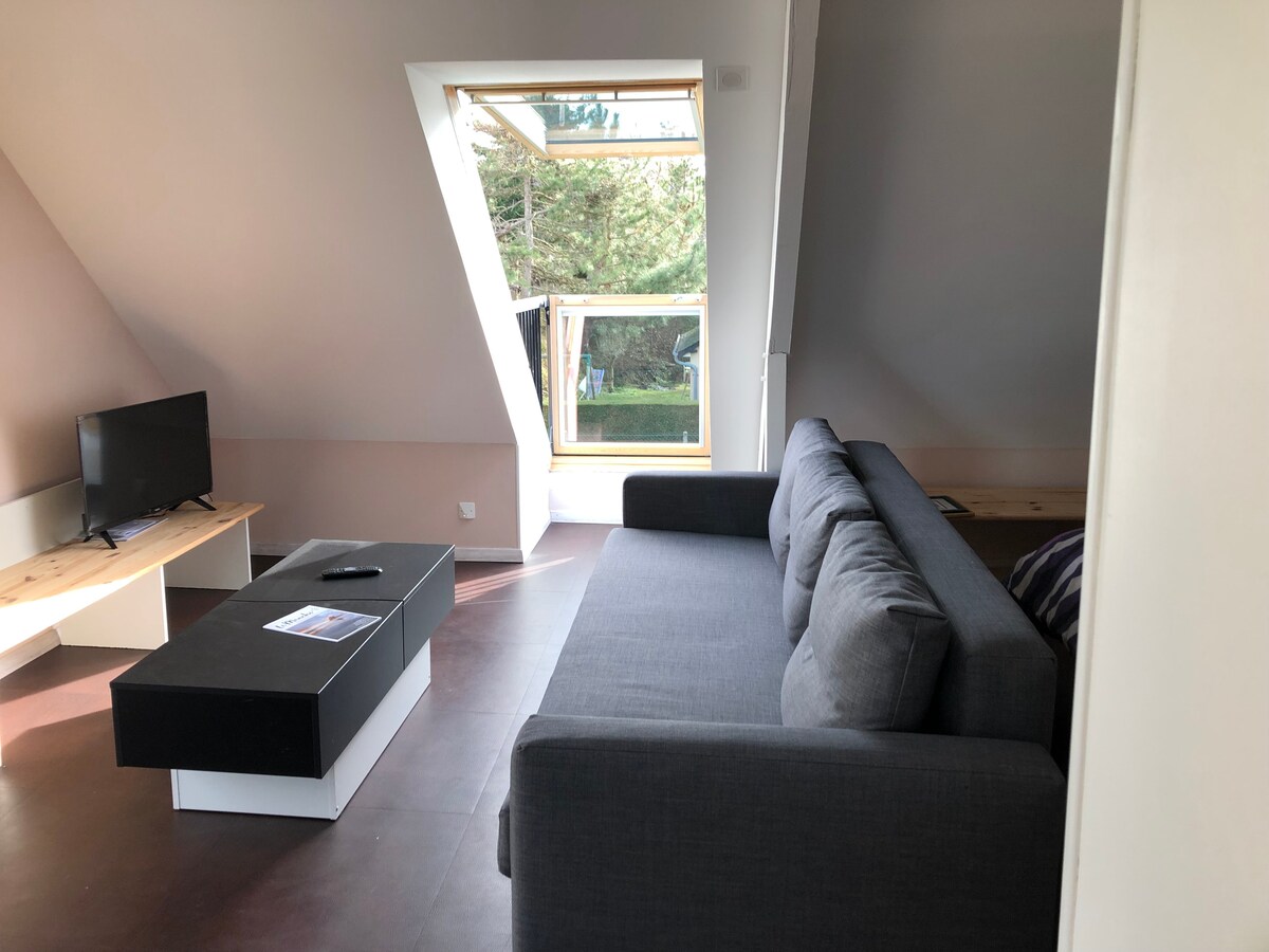 Jullouville, 5km de Granville, petit loft de 35m² , 2 -3personnes dans l’idéal 2 adultes 1 enfant. Entrée studio escalier extérieur. Arrêt de bus de la ligne gare Granville - le Mt St Michel à 200m. La réputée plage de sable fin est à 100 mètres. Activités à proximité : pêche à pied coques, bouquet, crevettes etc. , mini-golf. Un peu plus loin : équitation, tennis, location de vélos, et golf 36 trous 10 km,. Marché vendredi plus mardi en été et dimanche celui de Kairon à 200 mètres .