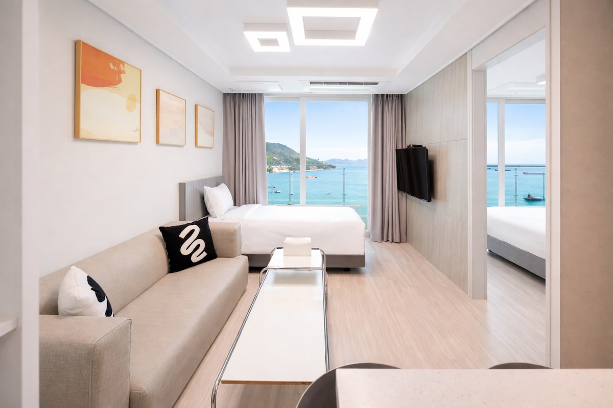 Nuevo abierto el 28 y✨ 24 de julio ✨Todas las habitaciones con terraza y vista al mar Camas Sealy de primera categoría para✨ la máxima relajación Café cápsula de granos frescos tostado directamente en una famosa cafetería en✨ Corea (¡hecho por sí mismo!) Ubicado ✨justo al lado de Songdo Cable Car, cerca de Songdo Beach. ❤️La habitación está asignada al azar, así que ten en cuenta que el interior y el número de pisos pueden diferir de las fotos. 📺Electrónica: TV con Netflix (con tu propia cuenta), wifi gratuito, aire acondicionado individual, purificador de aire, almohadilla de pared, nevera, cafetera Nespresso, hervidor eléctrico, inducción 🍳Utensilios de cocina: utensilios básicos de cocina y vajilla, copas de vino, detergente de cocina y esponja 🛁Artículos básicos de baño: champú, acondicionador, gel de baño, jabón de agua, toalla, secador de pelo, alisador de pelo