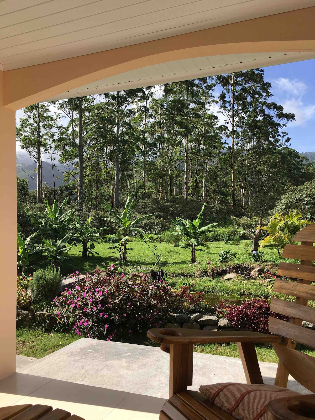 Relax in this peaceful oasis, nestled into the mountains of Chiriquí, with river access and fantastic views. Spacious enough for the whole family, this home is fully stocked and comfortably furnished. Perfect for romantic getaways or family vacations, and perfectly situated to enjoy hiking, bird-watching, or swimming. Fall asleep to the soothing sounds of the river, enjoy breakfast on the private patio, or hike the mountains from your own front yard.