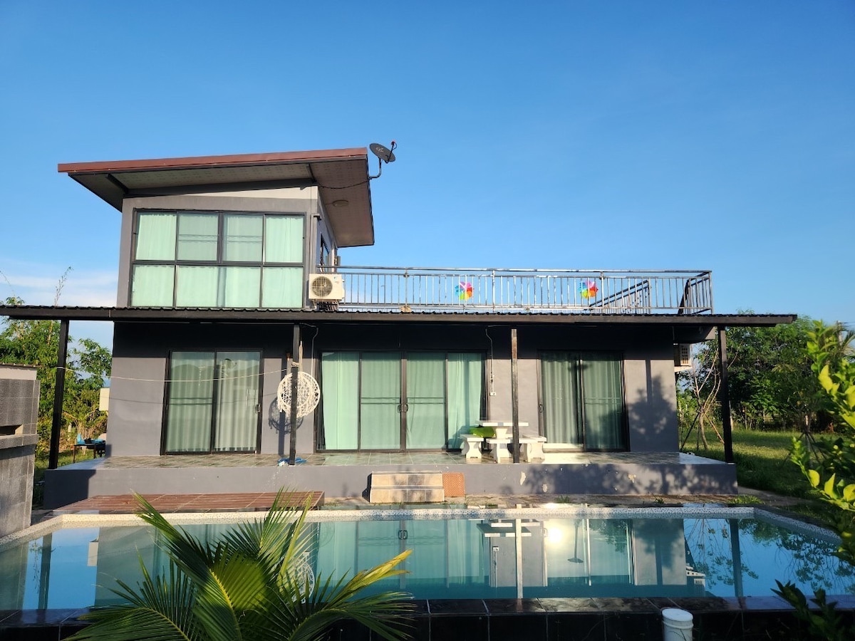 บ้านพักพูลวิลล่าติดเขาเหมาะกับทริปครอบครัว รองรับได้สูงสุด 10-15 คน มีสระว่ายน้ำ ลานกางเต้นท์ รถATV เตาปิ้งย่างบาร์บีคิวไว้บริการ
