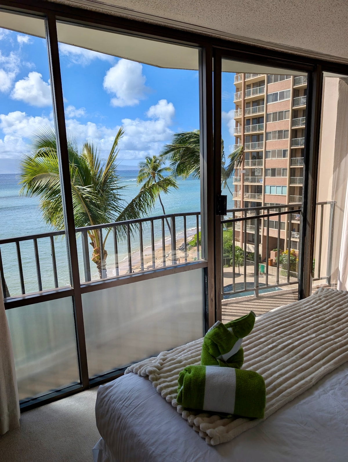 ¡Te damos la bienvenida al Royal Kahana! Las vistas desde tu lanai privado son de primera clase. La vista incluye el mar, el atardecer, las islas vecinas, las montañas e incluso brechas de ballenas jorobadas. Relájate en nuestro estudio mejorado que cuenta con todos los servicios que necesitas para disfrutar de una estancia increíble. Las mejoras recientes incluyen iluminación actualizada, obras de arte, muebles, ropa de cama y almohadas nuevas, asientos nuevos y adicionales en el lanai y TV OLED. Puertos USB junto a la cama y la cocina. Ideal para parejas, con sofá cama podemos alojar a 3.