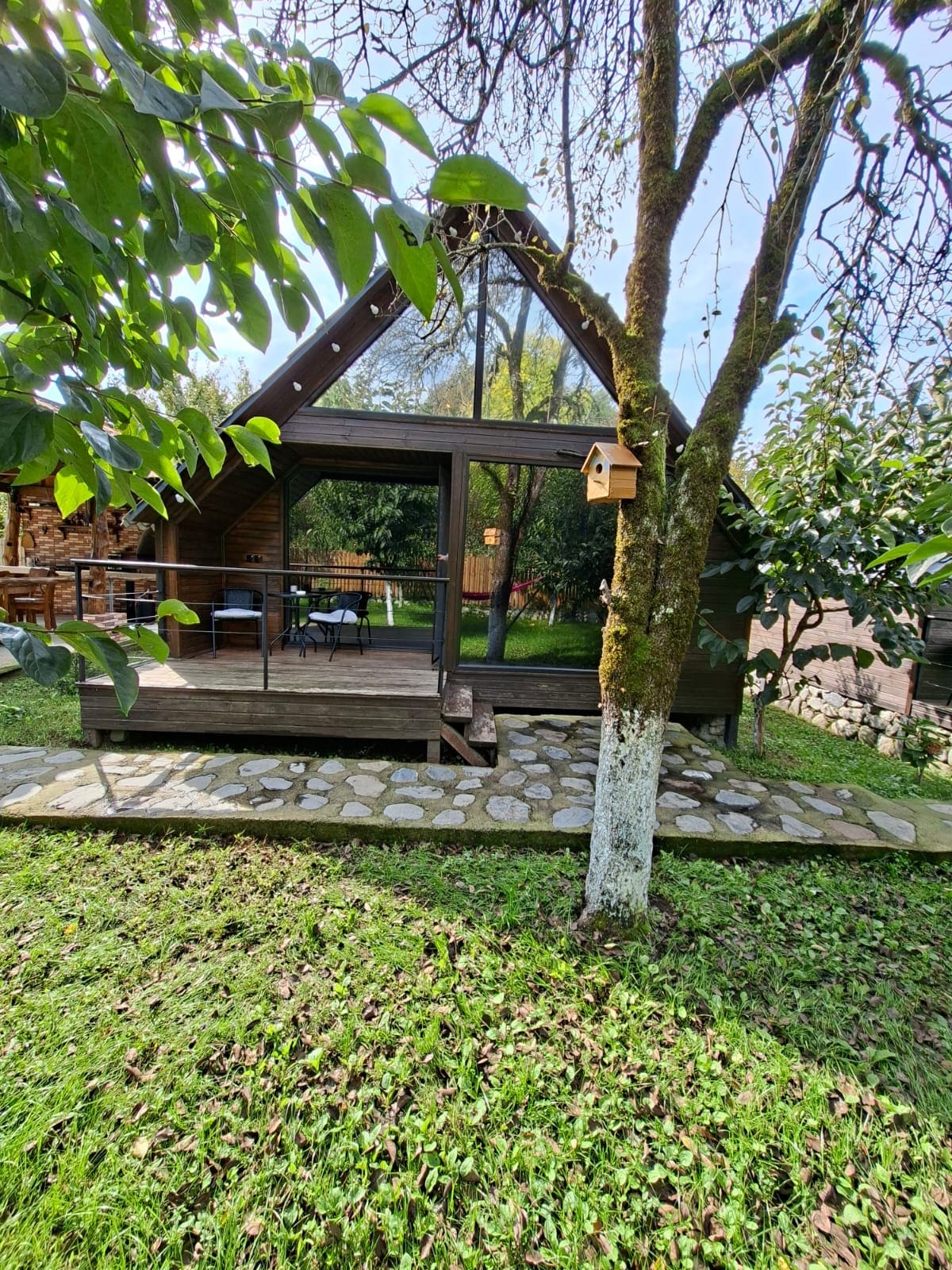 Esta casa cuenta con todo lo necesario: cama grande, escritorio de trabajo, enorme terraza con hermosas vistas a la montaña, baño pequeño e inodoro. En nuestras 12 hectáreas de tierra se puede encontrar gente con la que hablar, árboles para escalar, ríos para nadar, campos para bailar, montañas para ver. La casa comunitaria está disponible 24/7 con té y café gratis. 3 comidas al día de nuestra granja orgánica por un precio adicional. El lugar pertenece a una comunidad internacional que está abierta para nuevos miembros.