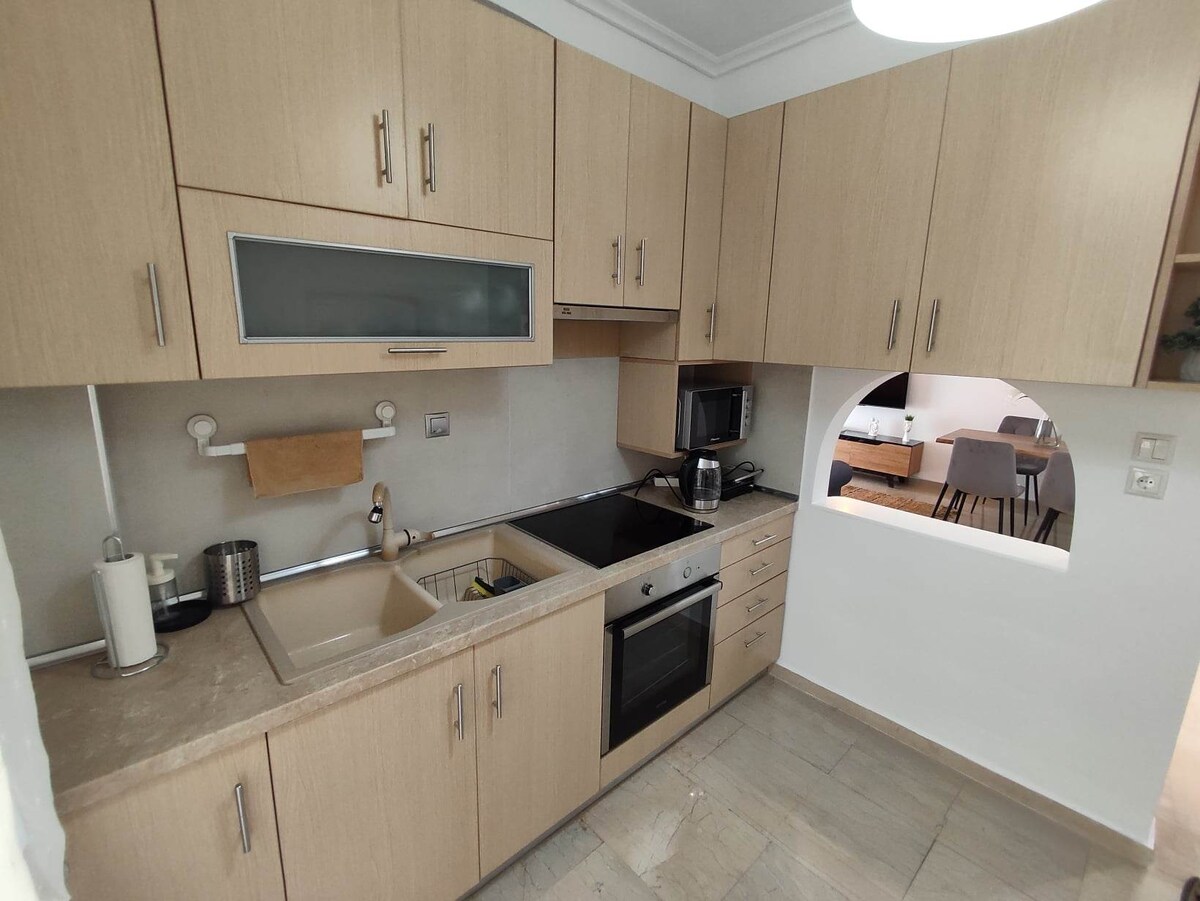 El apartamento está situado en la calle costera de Aretso Kalamaria y está a solo 100 metros del puerto deportivo de la zona, cuya vista se puede disfrutar desde el balcón. El lugar es céntrico y está al lado de varias cafeterías y restaurantes, mientras que a 80 m se encuentra la parada de autobús con la que puede visitar el centro de la hermosa Tesalónica en aproximadamente media hora. También hay un supermercado y una farmacia en el barrio para todo lo que necesite.