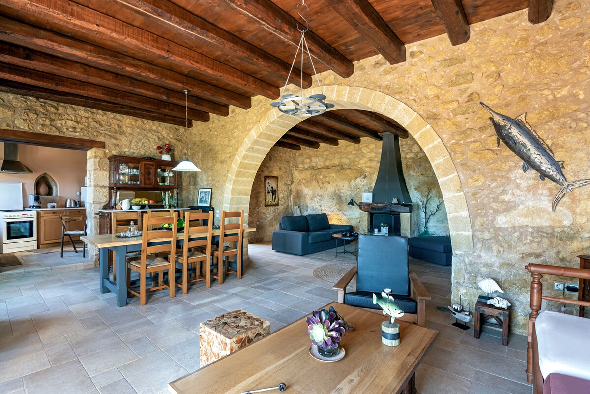 Villa Kamara is a hospitable, stylishly renovated house with 2 bedrooms, a private heated jacuzzi and unique character. It is located in the peaceful village of Kamara, at about 5 km from the beach. It is made mainly of wood, stone and natural rock. The traditional Villa Kamara is an ideal retreat for nature lovers and it has primarily been designed as the lifetime dream of the owner. A car is needed for your stay since you can find many taverns, two supermarkets and a bakery at about 5 km away.