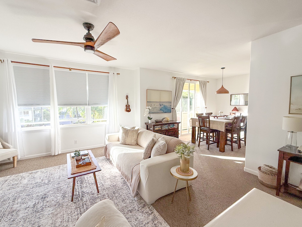 Este moderno y recién renovado refugio de playa para lunas de miel tiene impresionantes vistas panorámicas al mar y a la costa. Relájate en el sofá cama mientras contemplas la amplia vista desde el arrecife de Anini hasta el faro de Kilauea. Algunos han dicho que «se siente como estar en un barco en el mar» mientras presencian cómo las ballenas rompen en el océano y las olas rompen en el arrecife desde este lugar mágico. Una rara unidad de ático con techos altos, vistas desde todas las habitaciones, incluso el famoso Bali Hai desde la terraza. ¡Verdaderamente el sueño de una pareja!