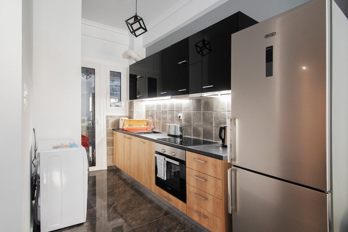 A stylish 75 Sq.m apartment in 2 levels renovated in 2019 with a balcony with sea view. Discover real Athens and its riviera, in one day.Enjoy privacy, in a calm neighbourhood and easy access to the beach, tram and bus within 4 minutes walking distance. Ideal for those who want to explore the new heart of Athens. Marina Flisvos and its park, Planetarium, New Opera, Nautical museum are within 15 minutes walk. Experience the warm sea from May to November.Shops restaurants are at 3 min walking.