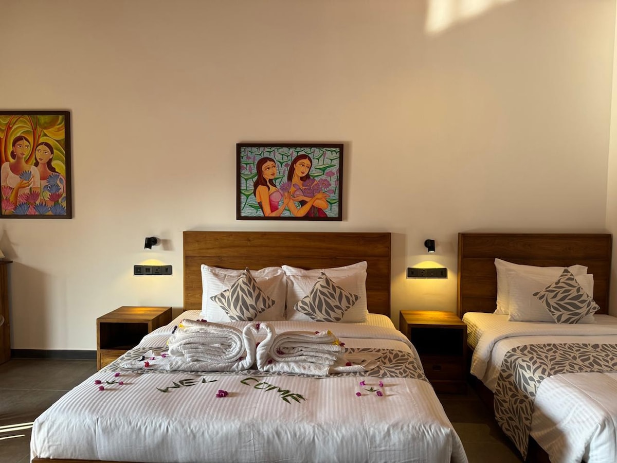 Welcome to Whispering Ocean – a tranquil beachfront villa just an hour’s drive from Airport. With three AC rooms, en-suite bathrooms, and free Wi-Fi, our villa offers the perfect setting for a relaxing tropical getaway. Let the soothing sound of the waves and breathtaking golden sunsets set the tone for your stay. For those seeking more than just a beach escape, we’re happy to arrange sightseeing tours, authentic Ayurvedic treatments, and other experiences to make your stay truly unforgettable.
