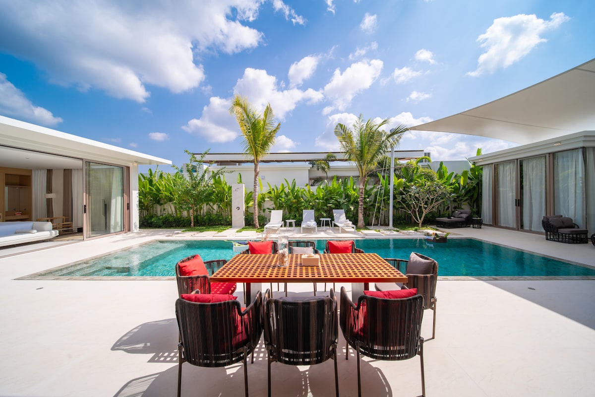 Disfrutá del lujo en nuestra nueva villa de diseño en el prestigioso Bang Tao, a solo 2 km de las arenas suaves y el cristalino mar de Andamán. Disfrutá de 3 elegantes dormitorios con baño, un luminoso living con un televisor de cine de 100", una cocina gourmet y una piscina de agua salada de 4×9 m suave para la piel. Organizá un asado al atardecer en el exuberante jardín tropical y relajate bajo el cielo estrellado. Estacionamiento privado, energía solar de 10 kW y seguridad las 24 horas, los 7 días de la semana, garantizan comodidad, privacidad y una vida inolvidable en la isla.
