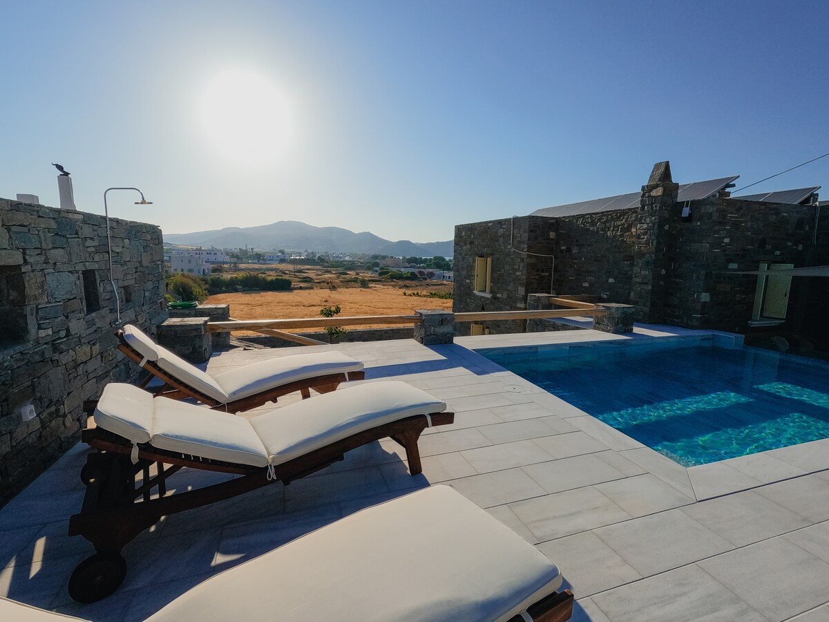 - Playa de arena, ideal para nadar. - Entorno rural y tranquilo ideal para relajarse. - Casa isleña por excelencia, arquitectura tradicional cicládica. - Terrazas con excelentes vistas al mar. - Wifi, aire acondicionado. - Bien equipado, sensación hogareña. - Servicios de playa, juegos de mesa, barbacoa. - Remoto y cerca de todo al mismo tiempo. - Pueblo pesquero de Naoussa a 7 km en coche. - Playas de Tavernas, Kolymbithres y Monastiri, deportes acuáticos, rutas de senderismo, cine al aire libre, teatro, todo a 15 minutos a pie.
