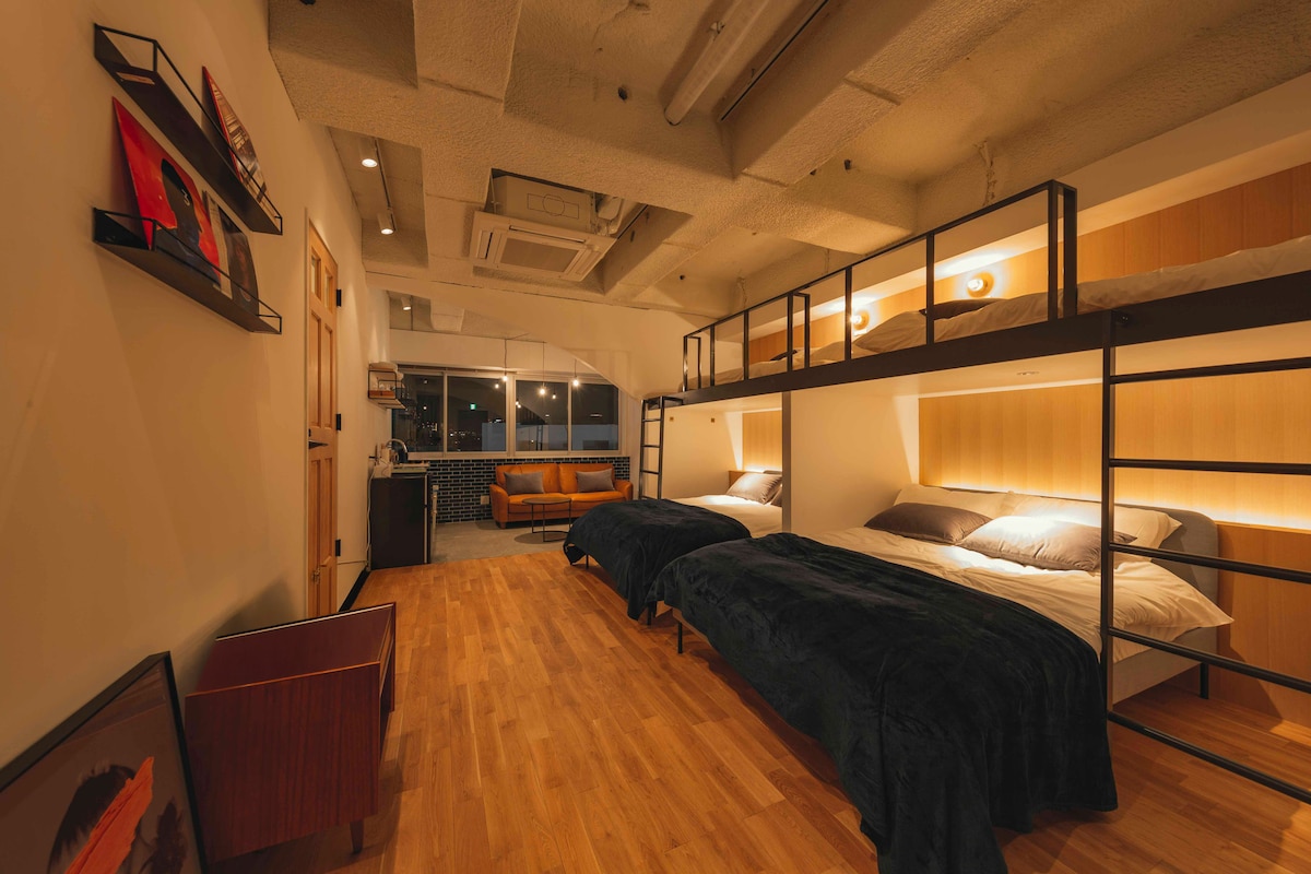 【Esta habitación está ubicada en la planta baja】 Apartamento estudio ubicado a 8 minutos a pie de la estación de Shibuya, con fácil acceso desde el aeropuerto de Narita y Haneda. ¡Está totalmente renovado y en la ubicación perfecta para explorar los lugares más destacados de Tokio! Cuenta con una cocina compacta, mesa de comedor, baño y 3 literas. Capacidad para hasta 6 personas. Si reservas a través de esta página, puedes utilizar toda la habitación de la planta baja. Las habitaciones de los niveles superiores se alquilan por separado. Está estrictamente prohibido fumar.