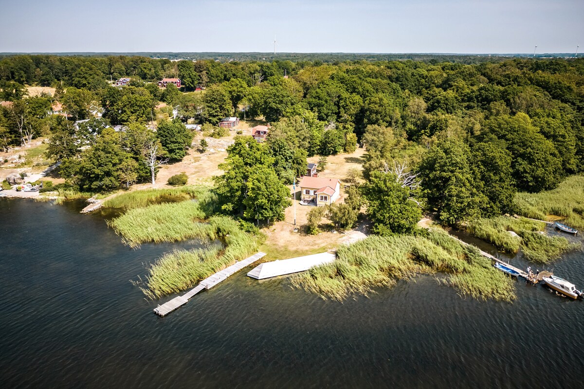 Välkommen till vårt charmiga hus som ligger på gården bredvid vårt eget hus. Bara 25 minuter med bilfärja ut i Karlskronas fantastiska skärgård. Huset på 50 kvm erbjuder bekvämligheter för fem personer. Fem bäddar, varav en dubbelsäng. 200 meter till en underbar badplats. ICA-butiken och färjan inom gångavstånd. Njut av sol och hav, eller ta en skogspromenad. Lugn atmosfär och närhet till natur. Välkommen till vårt paradis!