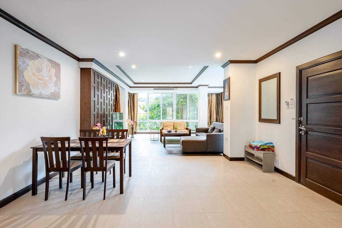 This expansive 155 sqm apartment is a professionally managed retreat near Karon Beach, offering a boutique feel in a quiet 24-unit project. Featuring floor-to-ceiling windows and a wrap-around balcony, this spacious 2-bedroom home includes all utilities for a worry-free stay. Our dedicated team provides formal check-in and 24/7 support, ensuring you enjoy the proximity to Karon Village and Patong with the security of expert, high-end care.