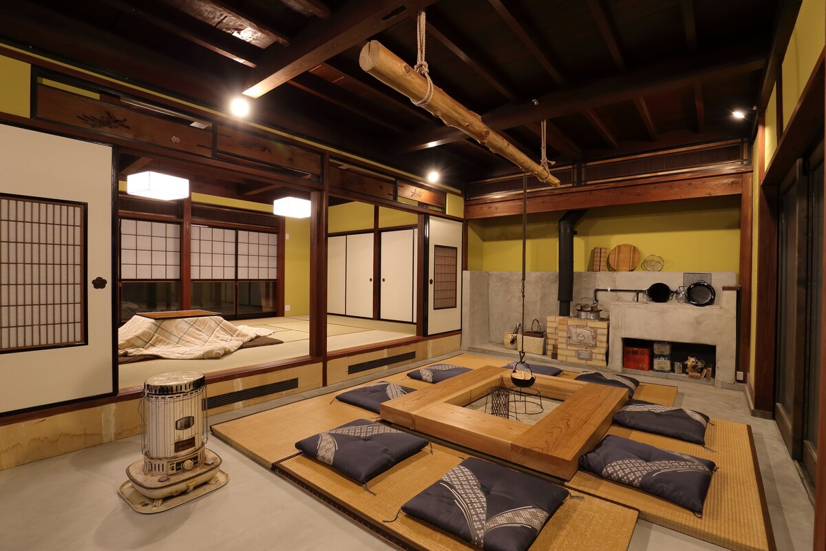 Welcome to our renovated 100years building. Enjoy our spacious home with an on-site sake bar in an old warehouse, open to both guests and locals. Use the hearth at your request; we'll light it upon arrival. Original wood, furniture, and equipment add a unique touch. A brief room tour is included during check-in. Nearby attractions: Shirayama-hime and Kinken Shrine. Kanazawa is a 20-minute drive, or take the Ishikawa Line. Personalized local recommendations available upon request.