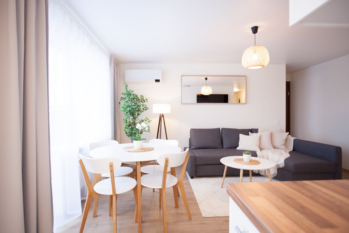 The apartment is in the centre of Kaunas, close to all the tourist attractions, theaters, and the old town. A big shopping mall is just around the corner, the Kaunas Žalgiris Arena is also at a walking distance. Easy to reach from the main bus and train stations. This modern loft-type apartment offers everything you need for a comfortable living. You will find all the necessary amenities, a dishwasher, a washing machine, a dryer. The apartment has been fully refurbished just recently.