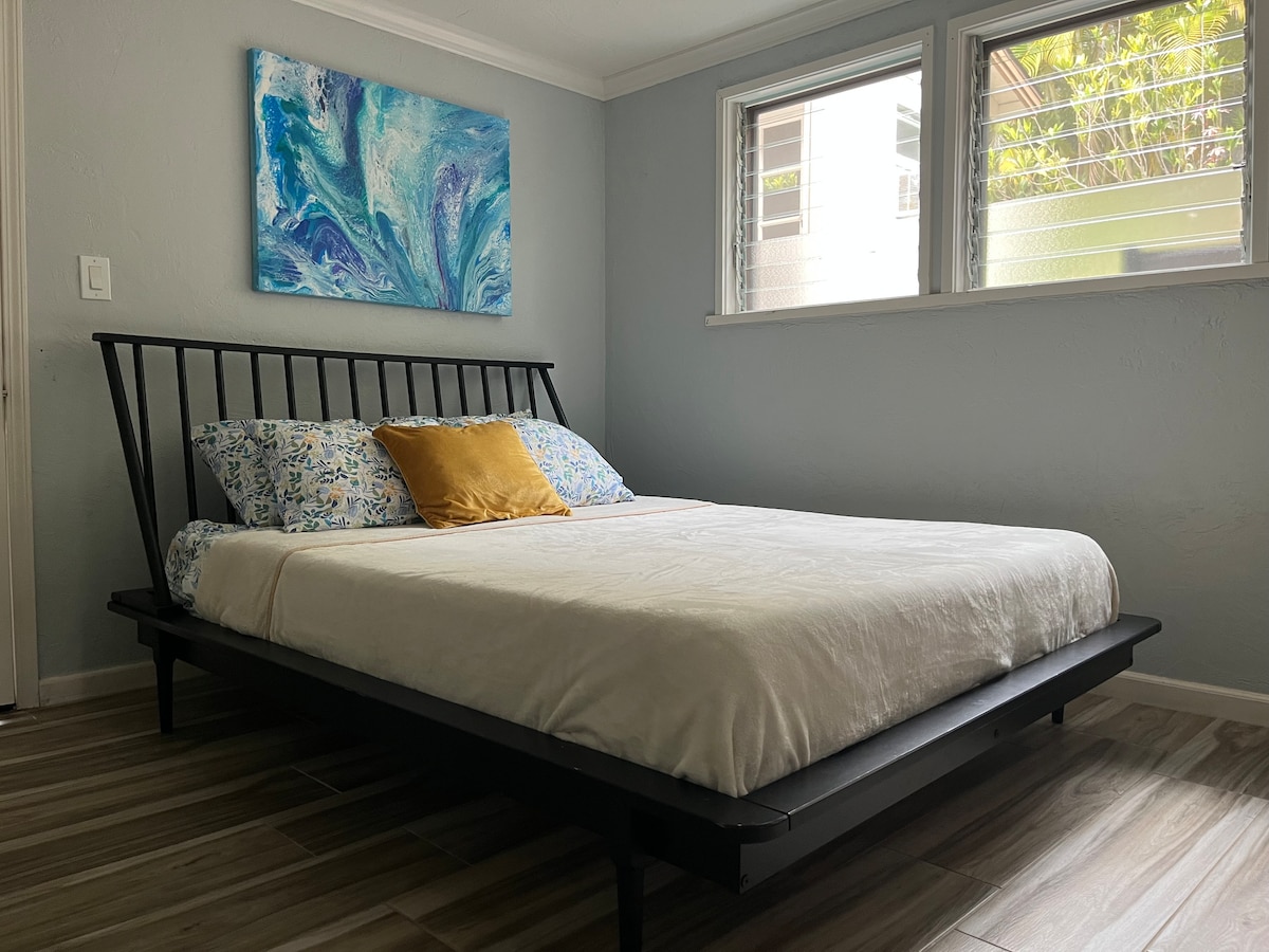 ¡Aloha y Mahalo por tu interés! Después de un breve descanso, estoy feliz de volver a hospedar en este maravilloso espacio ~ ¡Hacé clic en mi perfil para consultar mis más de 1400 evaluaciones de 5 estrellas y reservá con confianza! ¡Estarás a 5 minutos a pie de Magic Sands Beach y Ali'i Drive! Te encantará la cómoda cama Queen en esta suite privada (¡con aire acondicionado!) El espacio también cuenta con un área de cocina con nevera, placa caliente, horno de encimera, tostadora y cafetera. Aloha Nui