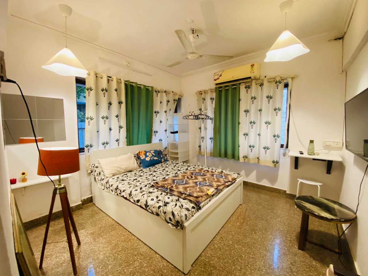 Stay in a cozy compact 1BHK at the “TOP,” overlooking Versova’s lush green canopy! Perfect for 2 guests ! Bright, breezy and peaceful, this home is bathed in natural light — a calming retreat from the city buzz. Enjoy your morning coffee by the window, or unwind after a day out. Just 15 minutes from Versova Beach, cozy cafés, and Mumbai’s vibrant nightlife, it strikes the perfect balance of comfort, charm, and convenience. Kick back, relax, and make this serene escape your home away from home :)