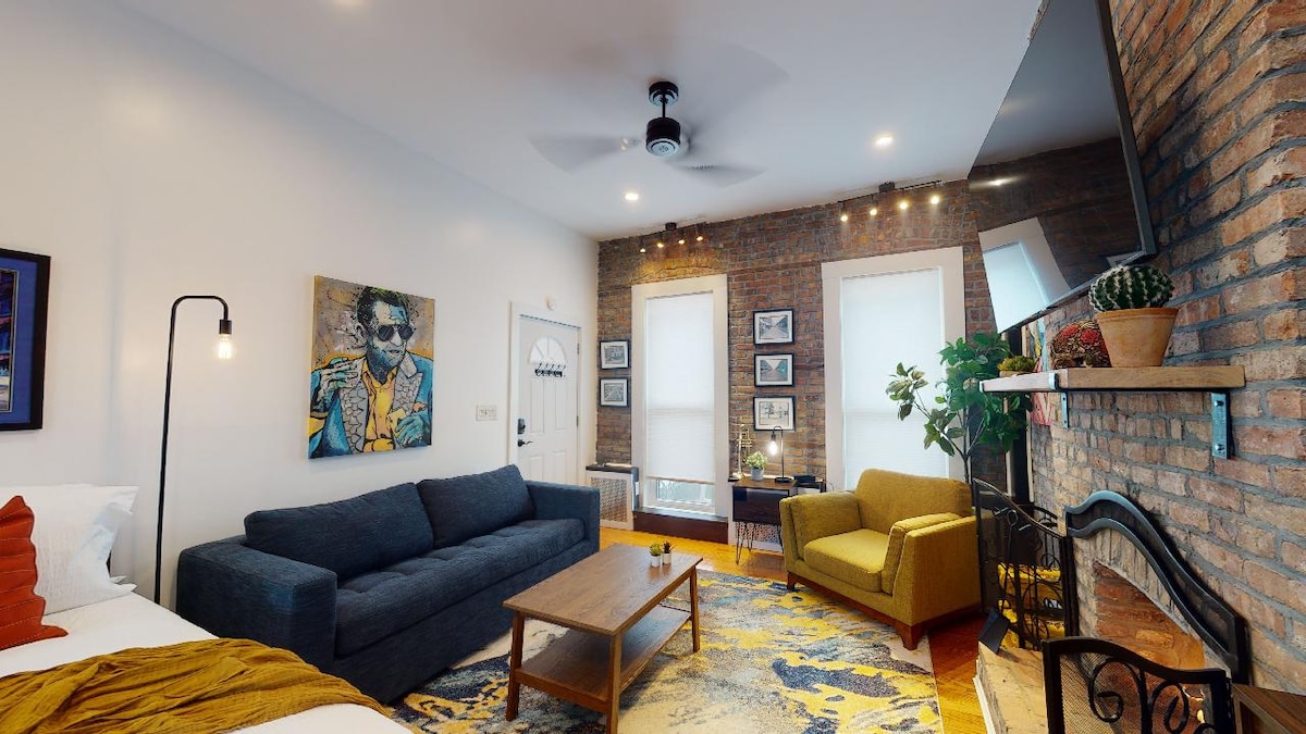 Experience the tranquil and chic ambiance of this newly renovated studio apartment in South Slope, south of Park Slope. A queen size bed & sofa bed, accommodating up to four (4) guests. The unit is fully equipped with modern conveniences such as a smart TV, split A/C system, washer/dryer, and a stylish kitchen. The charming design of the apartment features exposed brick walls, high ceilings, and a neighborhood that perfectly complements the space, evoking the essence of old Brooklyn.
