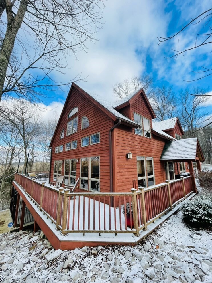 Beautiful Updated 3-floor, 3-BD, 2-BA Cabin. Nestled in quiet Deerwater Lake Gated Community. Sleeps-8. Prime Location. Pet friendly. Boasts its own private fishing pond, fiber optic Wi-Fi, large open deck, gas grill and much more! Great for kayaking, swimming, & fishing! Close to Hollerwood off-road park, Zip-Line, restaurants, Climbing, Natural Bridge and more. A great cabin for small groups.