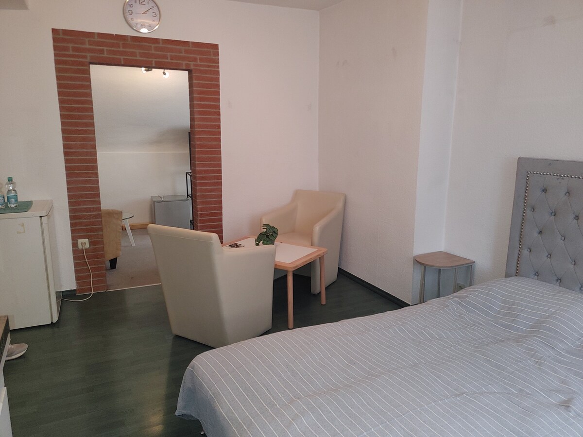 Los pequeños y acogedores 25 metros cuadrados se encuentran en un edificio antiguo renovado de 1900. Además del encanto histórico, ofrecemos una ducha privada, WC y una cocina americana (nevera, microondas), TV y acceso a WiFi incluido. El apartamento, con entrada independiente, tiene capacidad para 2 personas y está situado en la planta baja. Vivirás al lado del castillo de Rode, desde el que se puede disfrutar de una hermosa vista de los alrededores. La estación de tren está a solo 5 minutos a pie. ID:005-2-0011040-22