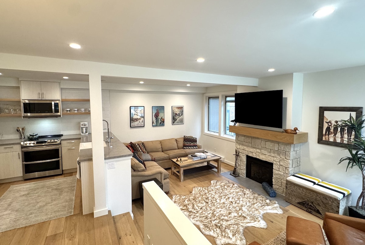 Moderno condominio actualizado con maderas duras de bambú, nuevos armarios de cocina, encimeras de cuarzo, techos altos, chimenea de gas con baldosas de piso a techo. Hermosamente amueblado con 3 dormitorios (ten en cuenta que la litera tiene un nido extraíble debajo) 2 baños más un armario de esquí y lavadora/secadora. Se proporcionan máquinas Nespresso y surtido de cápsulas de arranque. Ten en cuenta que los días y horas de funcionamiento de la bañera de hidromasaje de la comunidad están sujetos a cambios debido a la temporada (primavera/otoño cerrado) y al clima por el personal de Elkhorn.