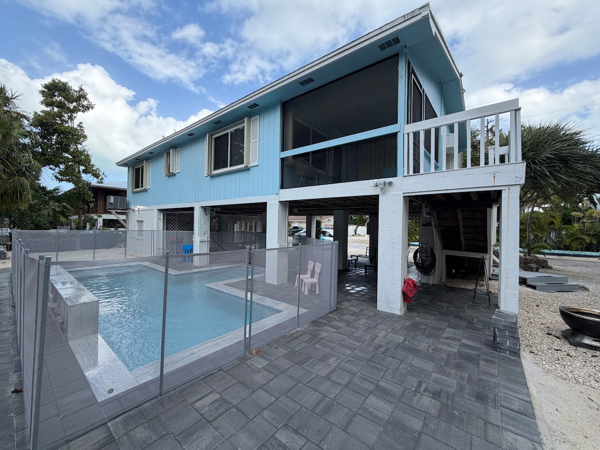 Tiki Time ~ your private paradise in beautiful Marathon, heart of the Florida Keys! This is the perfect place for a family vacation or relaxing getaway. Gorgeous 3BR home with your own private salt water pool, Tiki Hut, space to park a 30' boat/trailer, and ocean views from the balcony~Kayaks, grill, beach toys await you for your beautiful day in the Florida Keys! Less than 5 min to Sombrero Beach, Dining & Local Bars! Experience the Florida Keys like a local and book Tiki Time today!