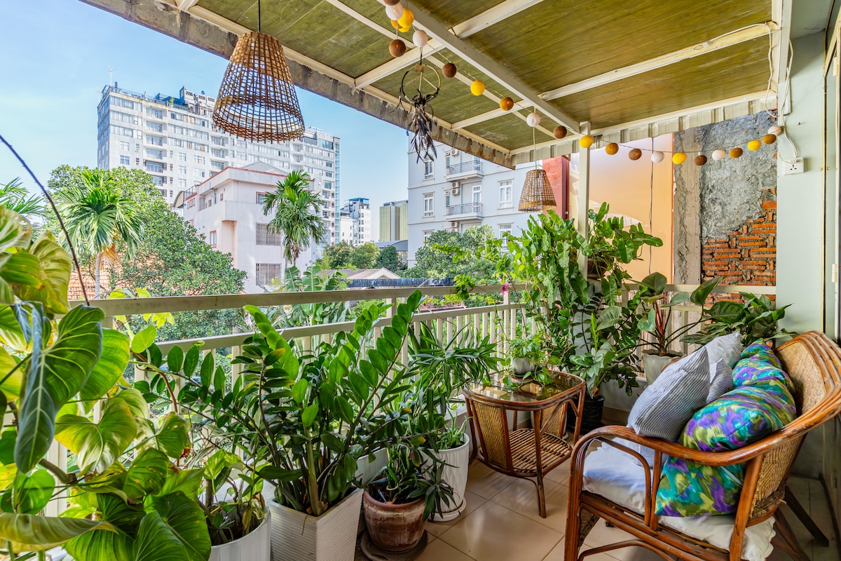 A retro-eclectic city retreat in the heart of Phnom Penh. Perched on the top floor of Phnom Boutique (Level 2), Bassac Charm is a spacious one bedroom city hideaway with bold character and cozy soul. Designed with love and lived-in charm, the space blends retro Khmer furniture, lush balcony greenery, books, and layered textures, offering guests an inspiring stay that feels both nostalgic and grounded. Ideal for long stays, or travelers seeking comfort and cultural flair in Bassac Lane.