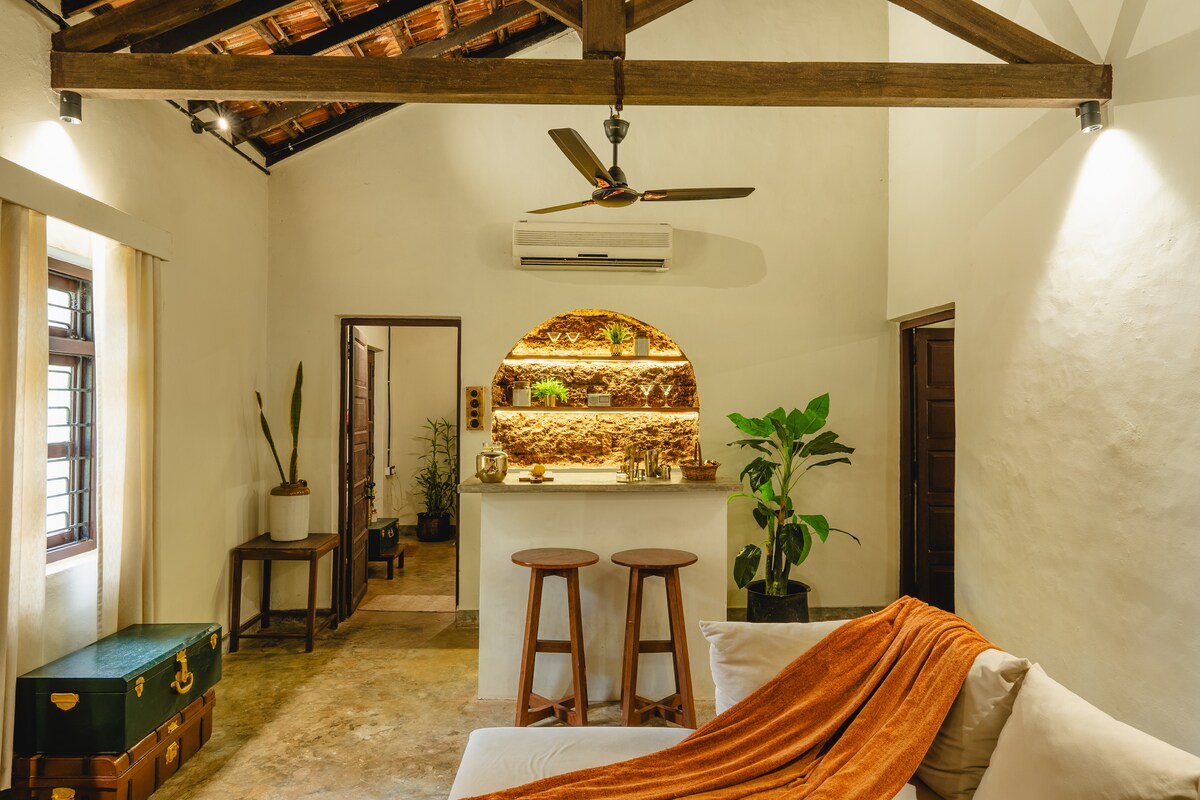 Nestled in the cultural heart of Old Goa, this beautifully styled 3-bedroom villa is where timeless charm meets modern convenience. Designed with a strong eye for detail and aesthetics, this villa offers an inviting blend of warmth, comfort, and serenity — perfect for families, couples, or a group of friends looking to unwind and explore the true soul of Goa. Please note : there are mobile network issues in the area. (Think of it as a detox from your devices)😁