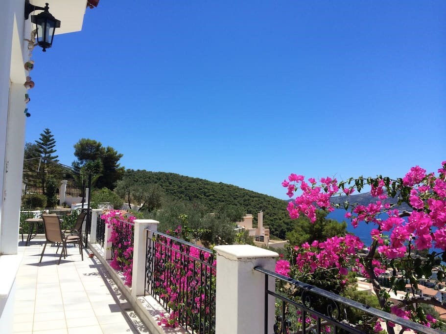 Disfruta de esta espaciosa y luminosa casa, su gran terraza con unas vistas impresionantes del casco antiguo de la isla de Poros y el mar Egeo. Relájate junto a los árboles en la hamaca o el baño al aire libre mientras bebes una copa de vino o un café por la mañana viendo pasar los barcos. Nuestro espacio es perfecto para familiares y amigos. Gran lugar desde el que puedes explorar Poros y Peloponeso. Compartiremos contigo los mejores consejos sobre playas, 5 minutos a pie, restaurantes, cafeterías, actividades que puedes hacer o sitios que puedes visitar.