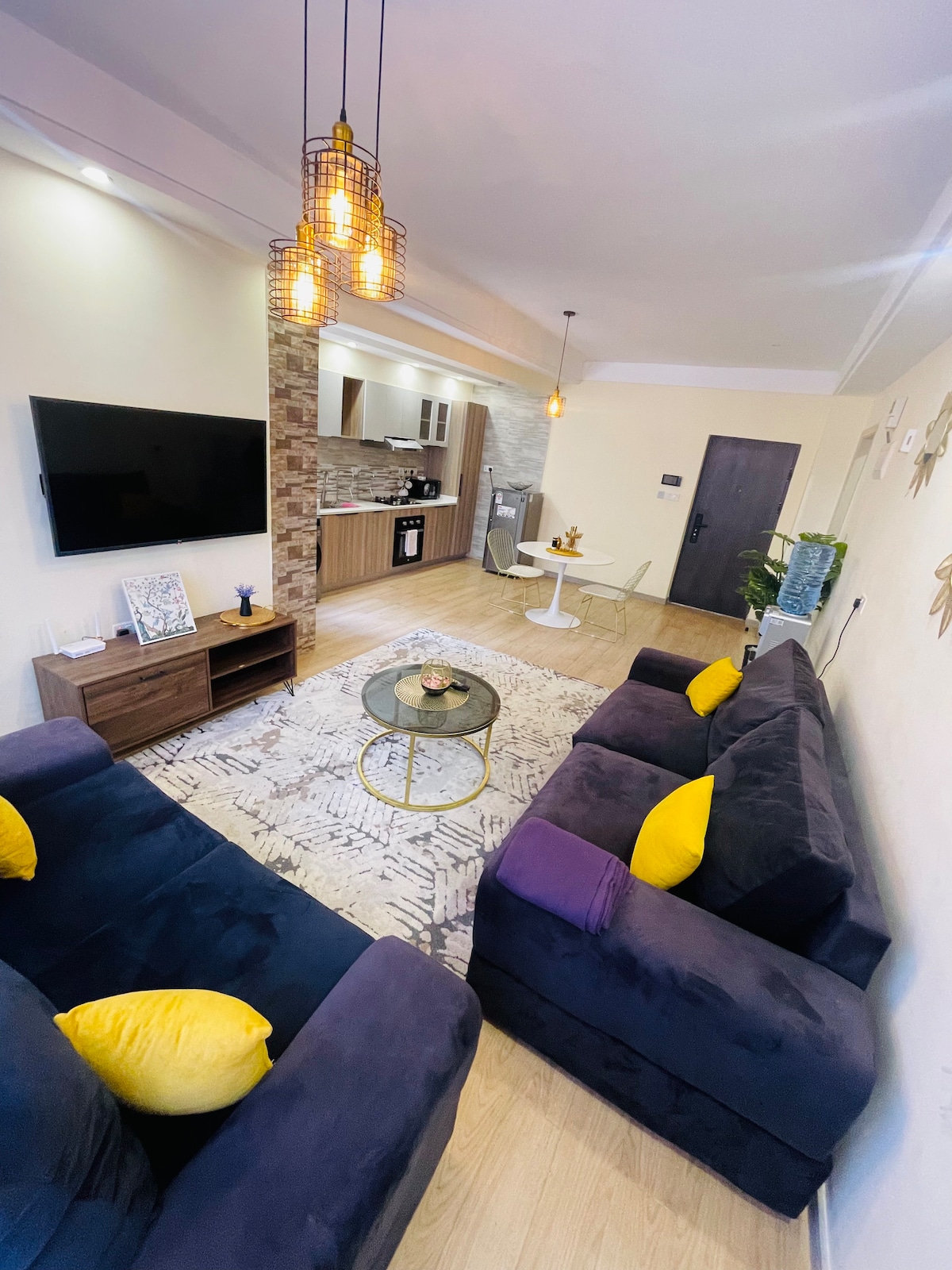 Escape to a world of elegance and tranquility in this modern gem, nestled in the heart of Kileleshwa. Designed with impeccable taste, this sophisticated retreat blends contemporary style with comfort, offering a truly exceptional stay. Wake up to breathtaking city &skyline views from the floor-to-ceiling windows, where natural light illuminates the chic interiors. Every detail in this space is thoughtfully curated, from the stylish decor to the plush furnishings that create an inviting aura.