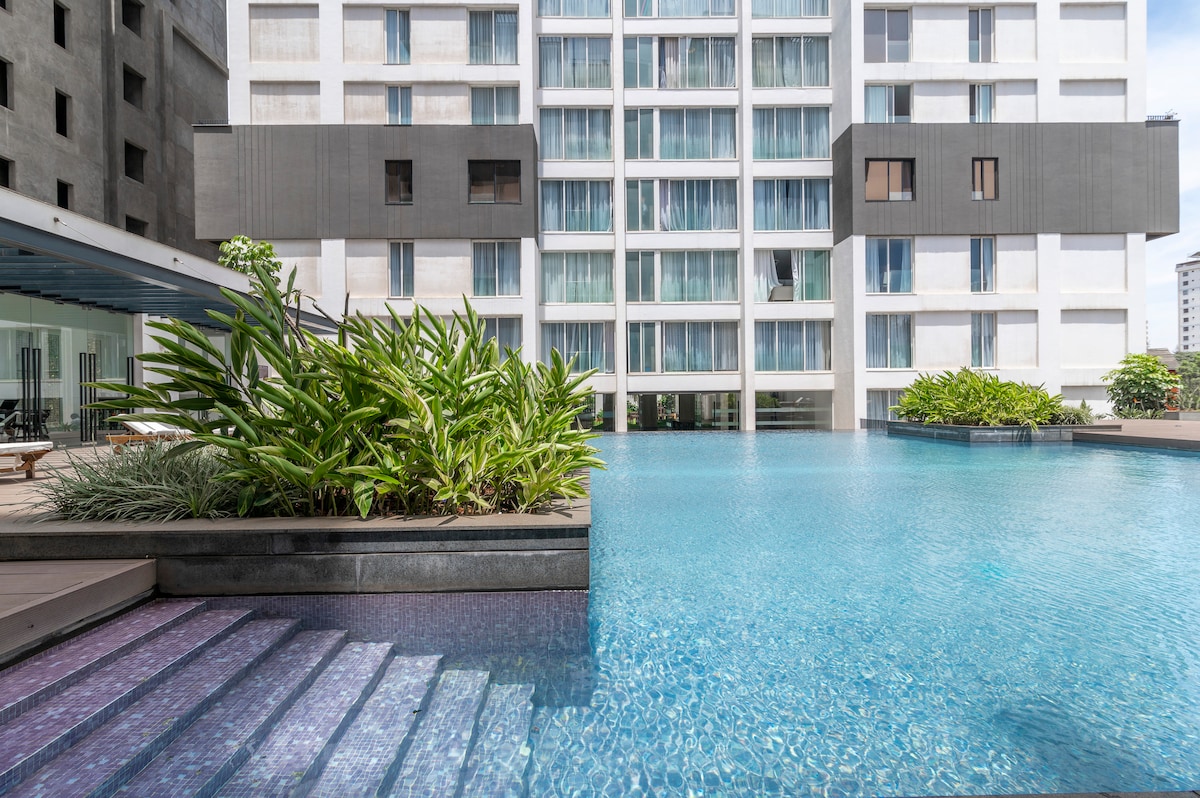 Disfruta de una experiencia de lujo en este céntrico alojamiento. SERVICIOS PRÉMIUM Aire acondicionado Freidora de aire/cocina completa Lavandería gratuita en el alojamiento Mosquiteras en puerta/ventana Internet rápido prémium (60 Mbps) Netflix Mesa de centro/escritorio con tapa elevadora (trabaja en el sofá) Purificador de agua para agua limpia. SERVICIOS DEL EDIFICIO Ubicación céntrica. Aparcamiento privado Gimnasio, sauna y baño turco. Sala de juegos con squash, billar Piscina infinita. Restaurante en el edificio Tienda de alimentación en el edificio Gran presión de agua.