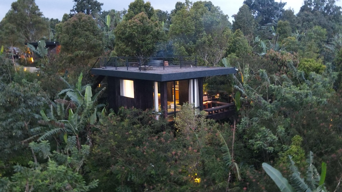 Experimenta la vida lujosa en nuestra casa del árbol balinesa, enclavada en medio de la verde campiña. Esta cabaña de lujo, que se asemeja a una pequeña casa, cuenta con un diseño impecable que se mezcla a la perfección con la naturaleza. Despiértate con una vista increíble de las majestuosas montañas, desde tu cama. Relájate en la bañera única al aire libre, rodeada de los serenos susurros de la selva. Disfruta de una encantadora barbacoa en la terraza privada, con un telón de fondo panorámico. Sumérgete en la esencia de Bali, donde el lujo se encuentra con la naturaleza.