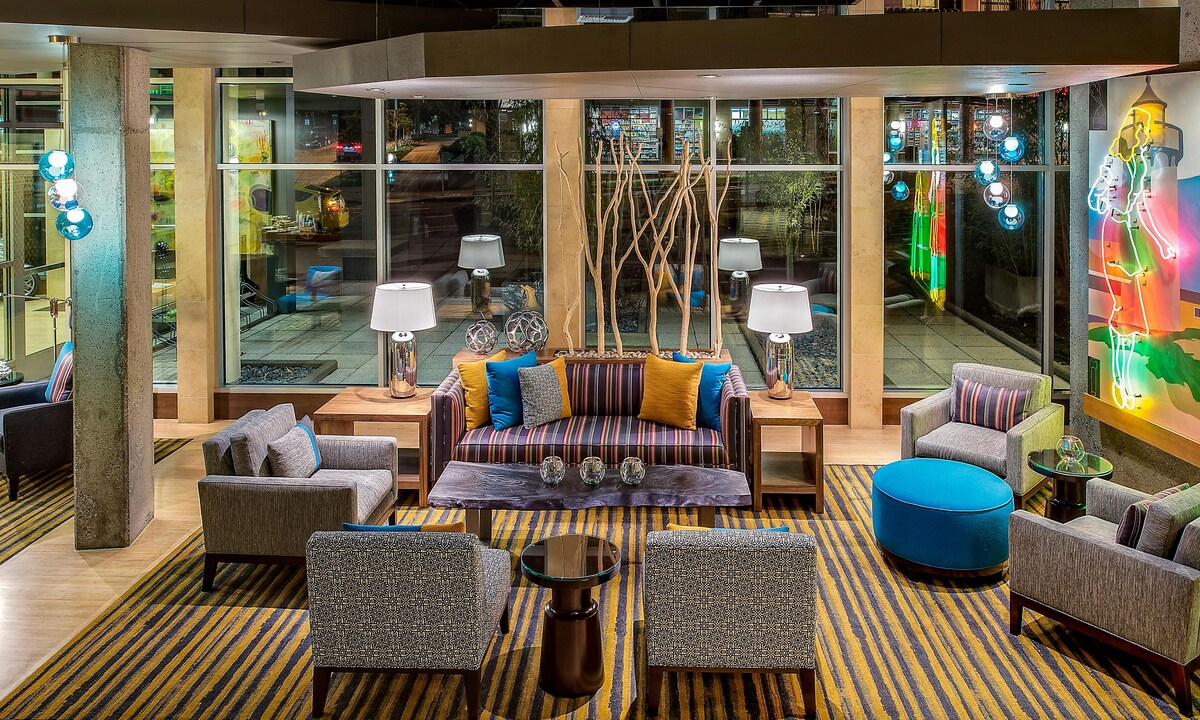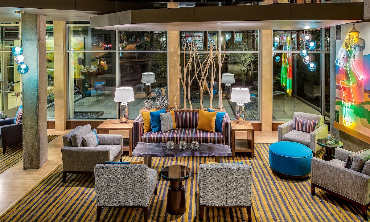 ¡En The Maxwell Hotel, somos un poco obsesivos con el arte! Diseñado como una “celebración de las artes vivas”, este hotel único se inspira en sus vecinos: la Ópera de Seattle y el Ballet del Noroeste del Pacífico. Desde el llamativo mosaico de piña en el lobby y los sorprendentes murales encargados hasta los divertidos azulejos de arte infantil junto a la piscina cubierta, cada rincón está lleno de toques creativos que hacen que este galardonado hotel sea realmente inolvidable.