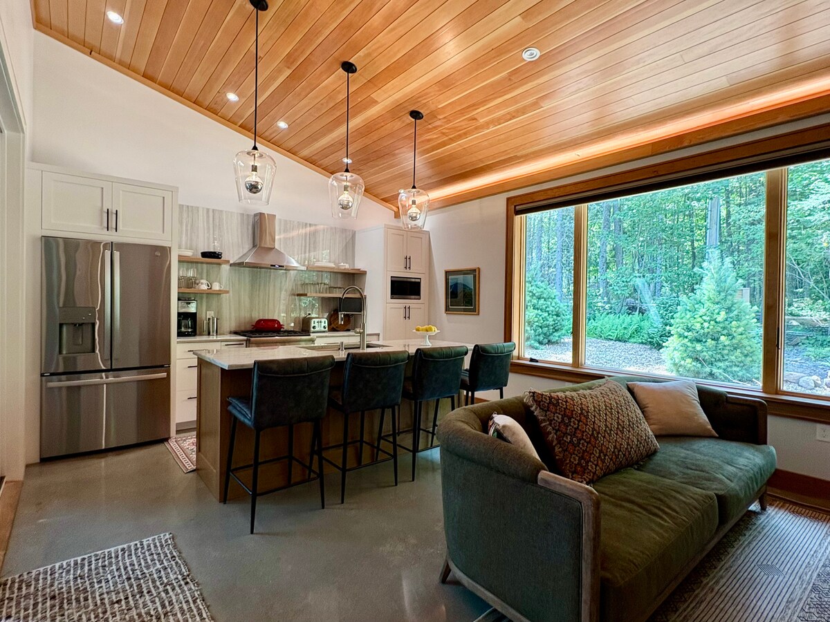 Acogedor y abierto espacio en la sala de estar con todas las comodidades de casa. Disfruta de la estufa de leña, las paredes de pino, la cocina contemporánea y la zona de lavandería con mucha luz natural en un barrio tranquilo cerca de lugares de interés locales. Todos los dormitorios están equipados con luces de techo, así como lámparas de mesa auxiliares que ofrecen un resplandor más suave para relajarse. La sala de estar y el dormitorio principal cuentan con televisores Roku de resolución 4K que te permiten transmitir películas, programas y canales de los principales proveedores de streaming.