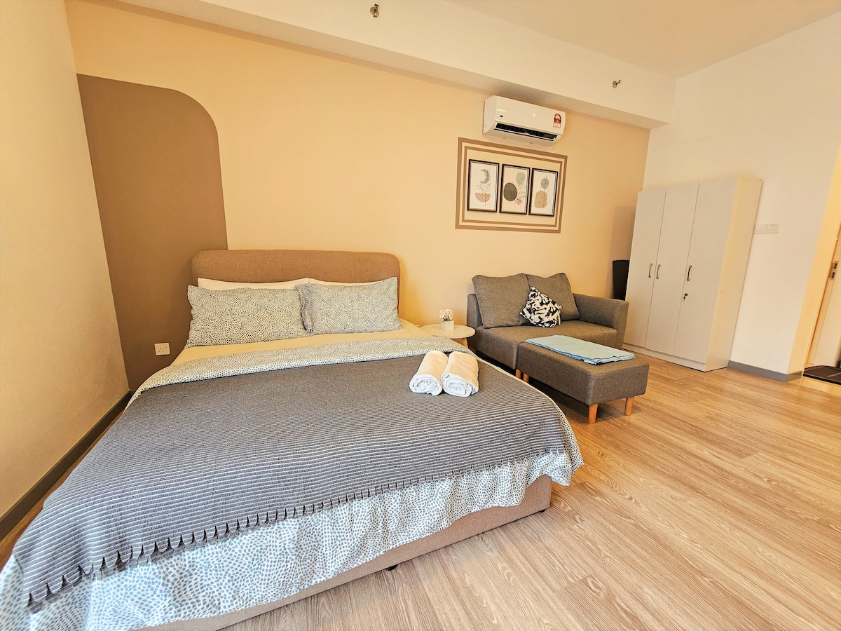 📍Pertama Residency Welcome to my New Bnb - Moonrise City! This studio is newly set up with lots of love, combines contemporary decor with modern amenities and an experience all can enjoy especially Jacuzzi moment with your love & 120” projector screen w/Netflix. This unique place has a style all its own, it offers a cozy, clean, quiet & refreshing stay environment for couples. Come and experience in the new bnb! See you.