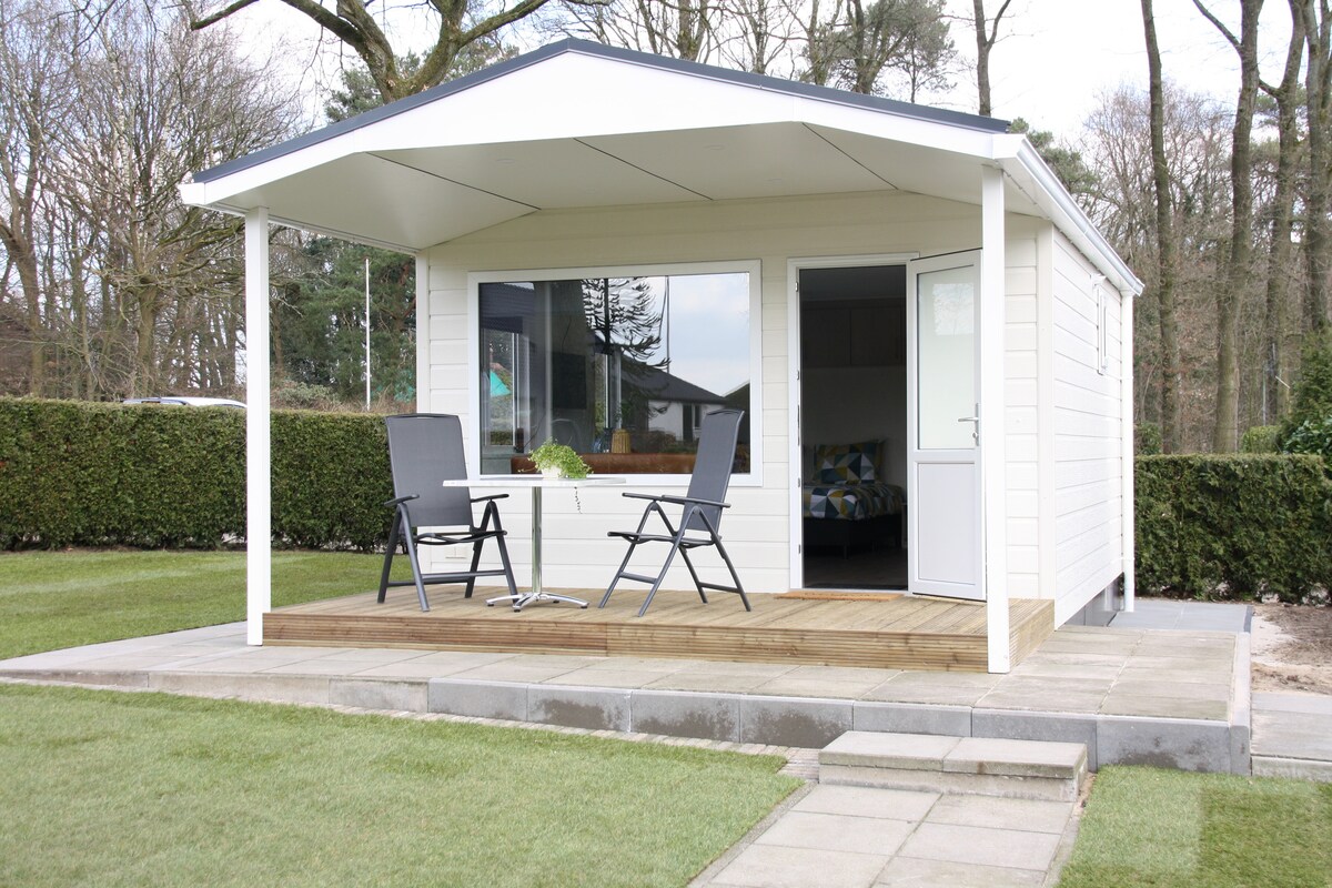 El camping De Bosrand tiene un bed and breakfast, similar a una habitación de hotel de lujo, un chalet de hotel. Contiene un área para dormir con 2 camas de somier, baño con ducha e inodoro (2 toallas (de baño) incluidas), sala de estar con encimera(sin vitrocerámica), nevera, microondas/parrilla, cafetera+tetera, TV, terraza cubierta y barbacoa. Estacionamiento privado, terraza adicional y, por una tarifa, también se puede agregar una tienda de campaña si deseas venir con más de 2 personas.