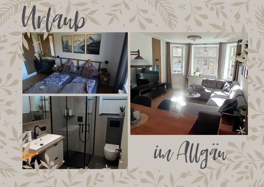 Geniesse deine Auszeit in dieser schönen und gemütlichen Wohnung mit Traumblick auf den Grünten und die Allgäuer Berge. Die Wohnung ist sehr ruhig gelegen, mitten im Oberallgäu, mit vielen Skigebieten, Langlaufloipen, Wanderwegen, Badeseen, Rennradstrecken und Mountainbiketrails vor der Haustür. Die Wohnung hat eine Fussbodenheizung, schnelles WLAN, ein Schlafsofa, ist geräumig mit topmoderner Ausstattung und Parkplatz. Auf Wunsch auch Brezel- und Semmellieferung.