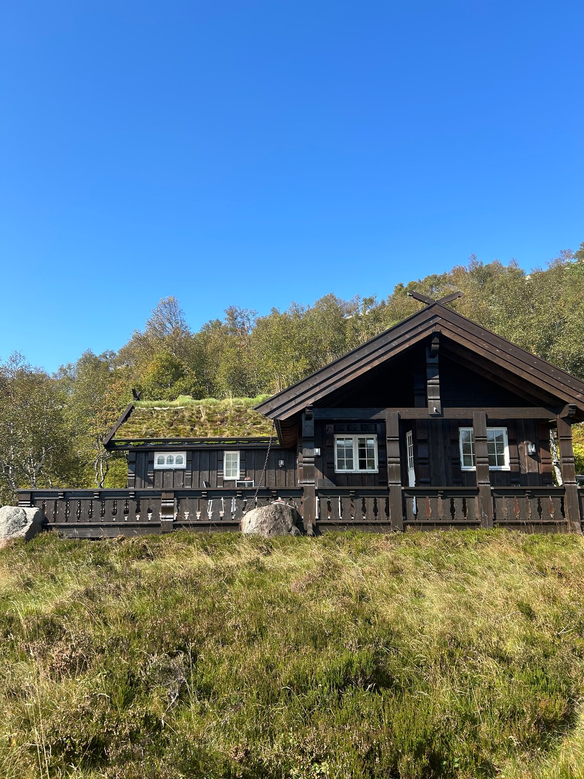 Relajate en un entorno tranquilo. Esta cabaña no tiene agua corriente o electricidad. Lo que la cabaña tiene es excelentes oportunidades de senderismo y un lago en el que puedes nadar y pescar cerca. Deja ir el estrés diario y simplemente relájate. Tendrás que traer tu propia ropa de cama, toallas y agua. Podés alquilar ropa de cama por 150 NOK. Durante la primavera, el verano y el otoño hay un pequeño arroyo cerca de la cabaña donde puedes obtener agua. Proporcionaremos leña para la chimenea.