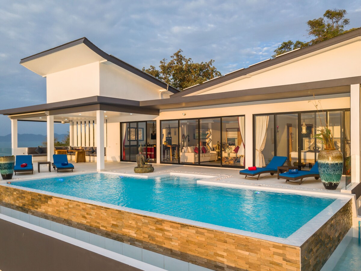 Cette magnifique villa neuve et contemporaine dotée d’une des plus belles vues de Koh Samui, avec sa piscine à débordement et jacuzzi est époustouflante, elle fait face au golfe de Thaïlande, et donne sur la marine park d’Ang Thong et l’île de Koh Phangan. Une fois plongée à l’intérieur vous ne voudrez plus en sortir ! La villa est luxueuse, avec des prestations haut de gamme. Elle est un véritable paradis qui ne laisse personne indifférent, de plus son rapport qualité prix est incomparable.