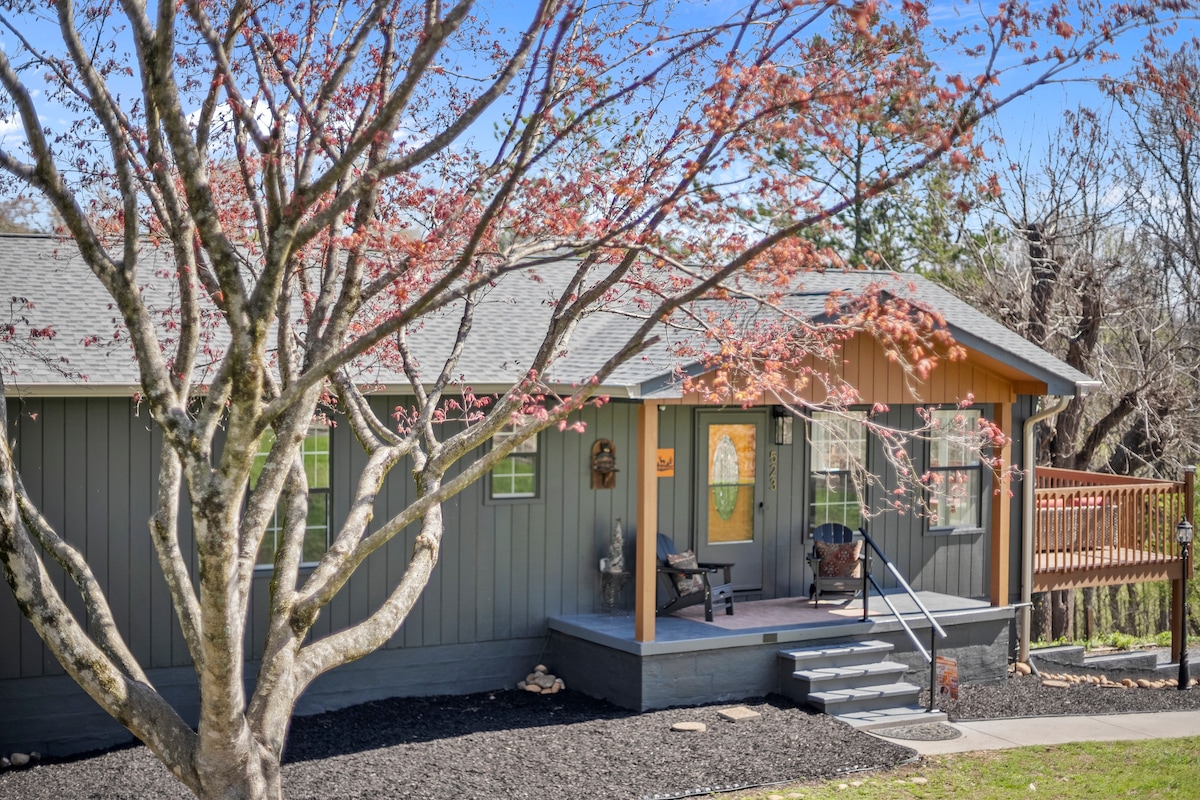 Este estudio está en la planta baja de nuestra casa con entrada privada y entrada. Es el único espacio en este nivel. Cuenta con una cómoda cama tamaño queen, cocina americana y un amplio porche privado cubierto con columpio de cama y dos áreas de estar. Los huéspedes que se queden 2 noches o más recibirán un regalo de agradecimiento. Te alojarás justo al lado de la I-40 y a minutos (20-40) de Sevierville, Pigeon Forge (Dolllywood) y Gatlinburg. Estamos a menos de una milla de Douglas Lake.