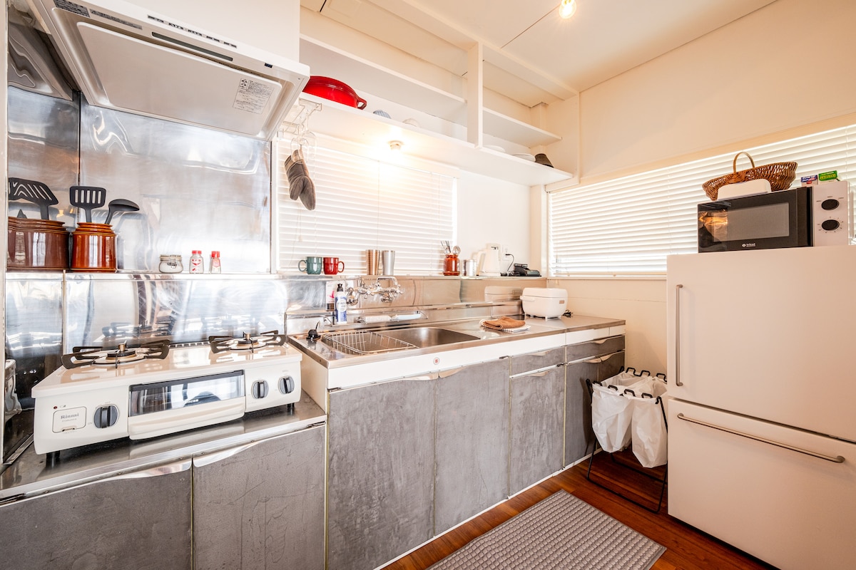 花輪 CASA ( 1 F ! 2 F ) (Espacio habitable privado, sin instalaciones compartidas.) (COSTCO Minami Alps Warehouse está a 10 minutos en auto). 花輪 LA CASA se ha convertido recientemente de una antigua casa popular. El ambiente japonés hace que la gente se relaje y calma. 2 habitaciones, ideales para 3 a 8 personas. Equipada con cocina、aire acondicionado (calefacción)、TV、lavarropas secarropas、heladera、cocina de inducción、vajilla、toallas⋯⋯ ★ Supermercado OGINO: 1 min a pie ★ Tienda de 100 yenes: a 1 minuto a pie ★ Wi-Fi gratis ★ Estacionamiento gratuito