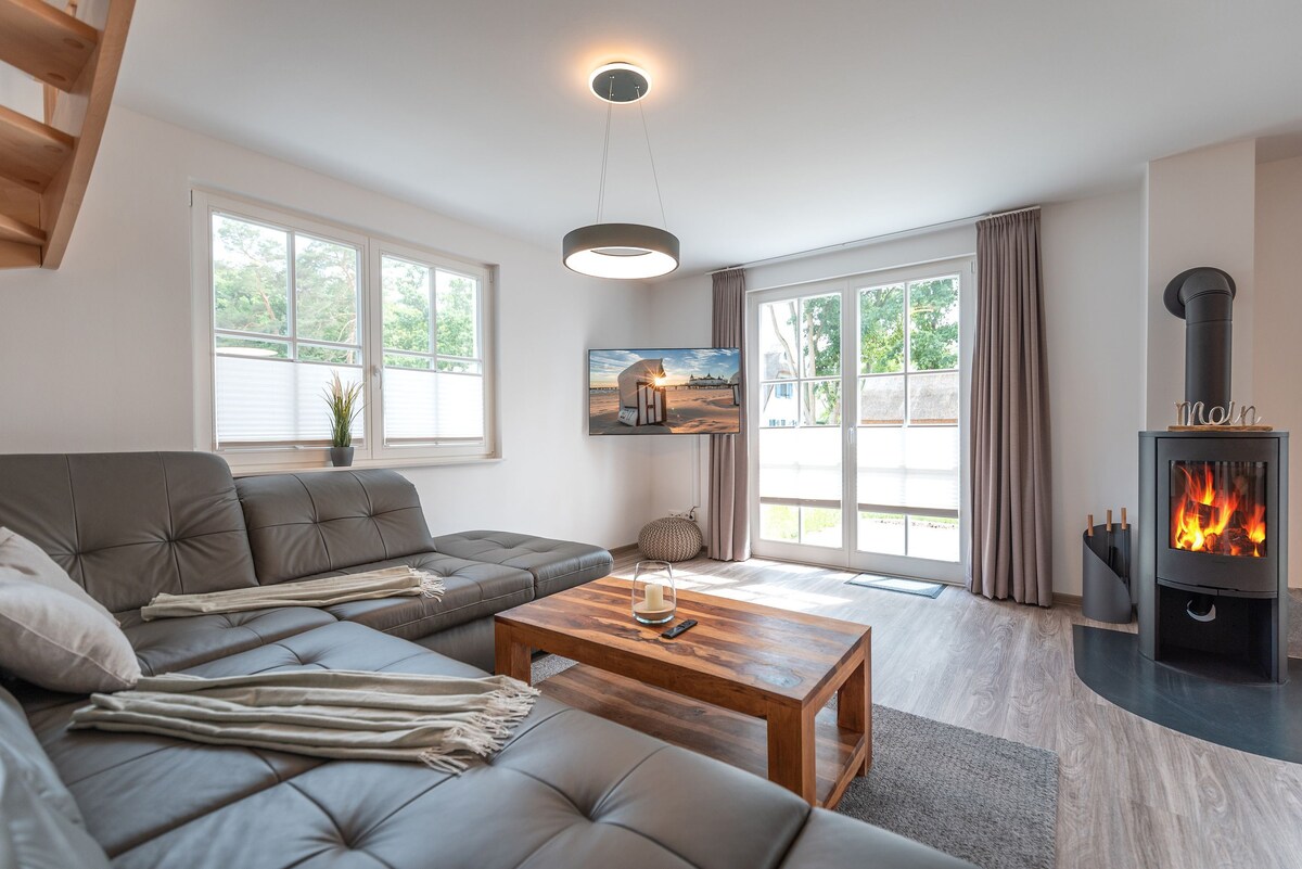 A partir del 1 de agosto de 2023, nuestra lujosa casa con techo de paja en la isla de Usedom te invita a alojarte. Tiene capacidad para un total de 8 personas y es perfecta para unas vacaciones con familiares y amigos. Disfruta de los días de verano en la gran terraza del jardín y emprende una aventura para explorar la isla. La hermosa chimenea y la sauna proporcionan un acogedor refugio invernal. Para los adictos al trabajo, hemos creado una oficina totalmente equipada.