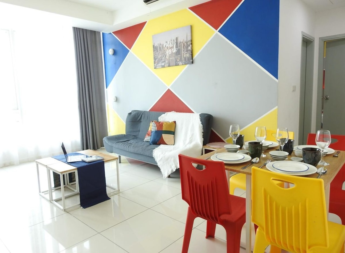 Stunning Sea view from the house. Chilling at the balcony. Swimming pool@level 6 Living Room, Queen Size bedroom, private sofa bed corner with curtains. Ensuite bathroom with hot and cold water shower. Large refrigerator with ice cube , mini kitchen with electric cooker, pot,plate,spoon,fork are available . Light cook at the kitchen. Filter water machine hot and warm. Please select 3 guest if you need single bed setting convert from sofa bed.