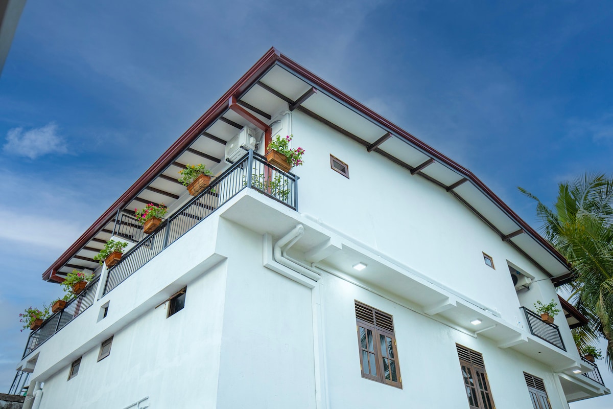 Disfruta de una experiencia elegante en esta unidad céntrica del lugar.standalong. supermercados, restaurantes , parques de tuk tuk cerca de la propiedad. Galle fort 4km , unawatuna 6Km , Karapitiya Teaching hospital y facultad médica 900 M . 1 dormitorio (aire acondicionado) ( camas individuales o dobles) 1 Barthroom (agua caliente) Cocina, nevera , estufa , microondas, lavadora, TV por cable, WiFi ( fibra ) Estacionamiento , energía solar y batería de respaldo para cortes de energía. Todo en una azotea .