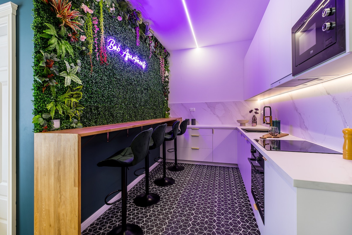 Apartamentos elegantes, totalmente equipados para proporcionar a los huéspedes una estancia cómoda y llenos de relajación. Ofrecemos a nuestros huéspedes apartamentos únicos, preparados con atención al más mínimo detalle. Cada apartamento está equipado para garantizar la comodidad durante el descanso: cómodas camas, cocina americana totalmente equipada, TV moderna y electrodomésticos, baño privado con toallas y un conjunto de cosméticos.