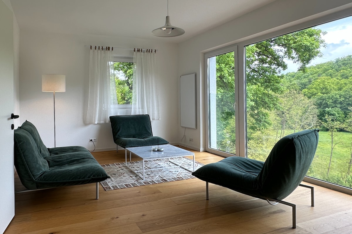 Si quieres una escapada romántica para dos, un viaje con amigos o familiares o simplemente quieres tiempo solo para ti, ¡este lugar es ideal para ti! Por supuesto, estaremos encantados de proporcionar una cama para bebés / huéspedes en el dormitorio si es necesario. La idílica casa de campo en un solo patio se encuentra en medio de un jardín de exhibición de 10 000 m² administrado orgánicamente, que puedes disfrutar exclusivamente durante tu estancia. Solo se puede llegar aquí a través de la conexión fija: ¡paz pura y relajación!