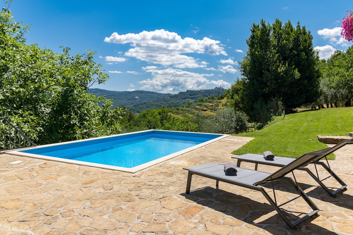 The house was an old peasant cottage renovated to modern standards with pool. The whole property is for your sole use. The only and nearest house is 50 meters away, but there is olive grove in between so you cannot see the neighbours and vice versa. The house is situated on the hill and you have direct view of Motovun and Mirna valley.