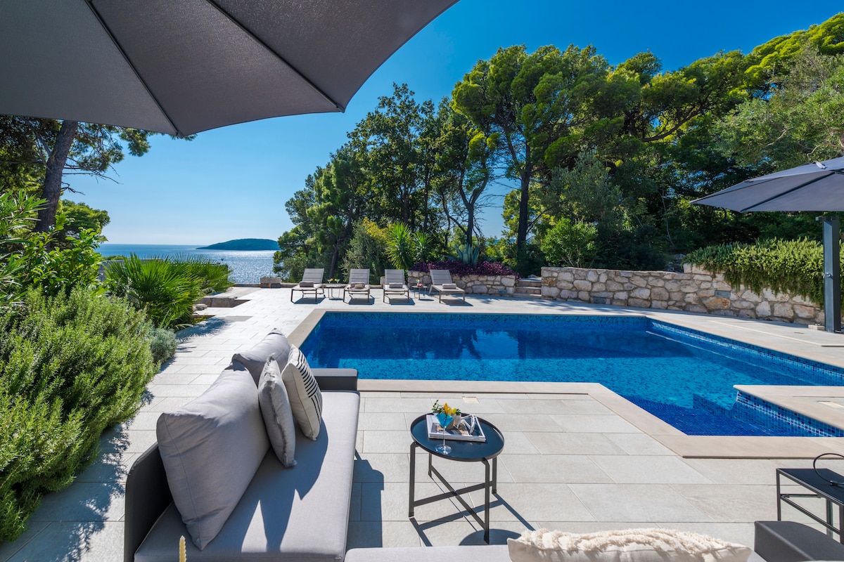 Villa de lujo Sol del Mar II. Te da la bienvenida a una estancia inolvidable rodeada de elegancia y lujo a solo un par de pasos del mar Adriático. Villa Sol del Mar II es un lugar verdaderamente mágico y una propiedad única con una vista impresionante del cristalino mar Adriático. Situada en la pintoresca, tranquila y pequeña ciudad costera de Slano en la Riviera de Dubrovnik, a solo 33 km del sitio del Patrimonio Mundial de Dubrovnik.